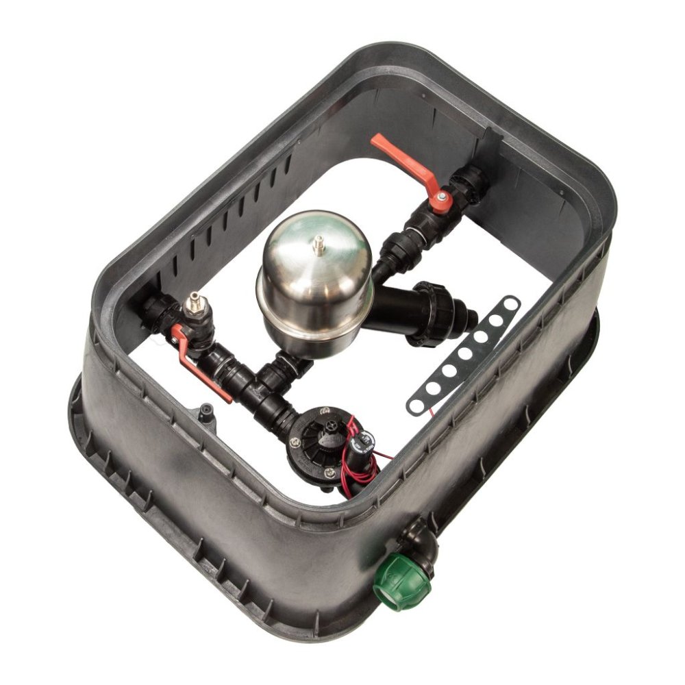 Šachtice IRIBOX HLAVNÍ SESTAVA je inovativní výrobek společnosti Irimon®, který byl vytvořen za účelem zjednodušení a zpřesnění instalace hlavní sestavy závlahových systémů pro profesionální i laickou veřejnost. IRIBOX HLAVNÍ SESTAVA je navržená pro použití s domácími vodárnami, které čerpají vodu z dešťových jímek a kopaných studní. Hlavní sestava je nezbytnou součástí automatických závlahových systémů. Jedná se o prvek spojující zdroj vody a potrubí závlahy. Pomocí ventilů v ní je možné uzavírat a otevírat přívod vody do systému, filtr zajišťuje zachycení větších nečistot ve vodě pro závlahu a tlaková vyrovnávací nádoba vyrovnává tlakové rázy mezi čerpadlem a závlahovým systémem, čímž je prodlužována životnost čerpadla. Pro zajištění dlouhé životnosti tlakové nádoby je použitá verze z nerez materiálu. Nejpodstatnější vlastnosti IRIBOXů je snadná a rychlá instalace, dostatek místa uvnitř prostoru, snadná výměna dílů i po letech atd. Oproti ostatním řešením je výhodou to, že při instalaci není třeba žádného dalšího vrtání a rozměřování. Šachtice je z dílny předvrtaná tak, aby všechny díly na sebe přesně navazovaly a šachtice si tím udržela velmi vysokou pevnost a tuhost. Tento produkt IRIBOX je vyráběn společností IRIMON, jejíž technici tento produkt vyvinuli jako výsledek vlastních instalačních zkušeností i zkušeností našich partnerských instalačních firem. Vyzkoušejte si tento produkt a jinak už závlahu montovat nebudete.